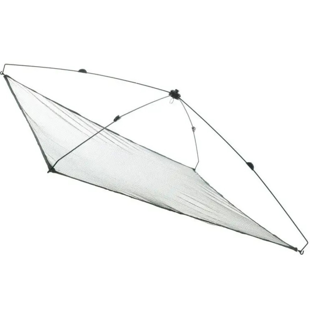 Рыболовный Паук малявочник имеет квадратную форму ( с бортиками), обтянутую полиамидной нитью (сетка паука цепляется к металлическому каркасу с помощью металлического кольца). Такая снасть может выдерживать большие нагрузки, так что Вы можете ловить не только мелкую, но и крупную рыбу. Благодаря складной конструкции, транспортировка очень удобна